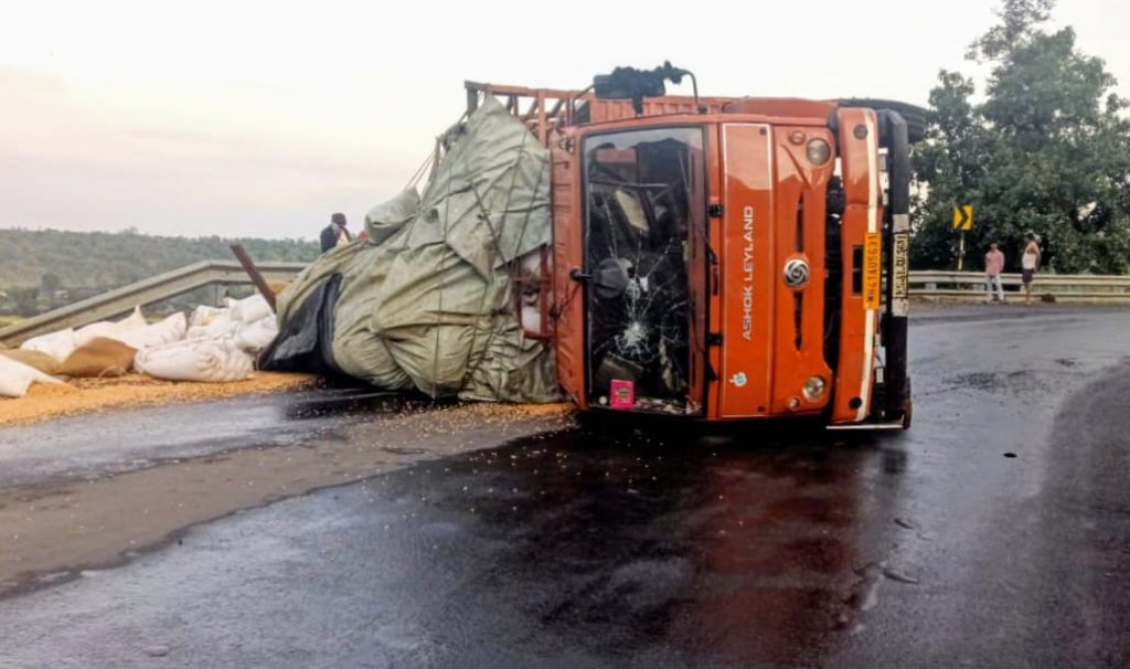 डांग: 28 अक्टूबर 2025: प्राप्त विवरण के अनुसार, कल सोमवार रात लगभग 12:30 बजे, मक्का से भरा एक ट्रक महाराष्ट्र के तराहाबाज से गुजरात के आहवा-चिंचली रोड पर जा रहा था। जहां यह ट्रक गुजरात-महाराष्ट्र सीमा पर चिंचली घाट से उतर रहा था। और उस दौरान, ट्रक के चालक ने स्टीयरिंग पर नियंत्रण खो दिया और ट्रक, जो भारी भरकम था। वो एक खतरनाक मोड़ पर पलट गया।