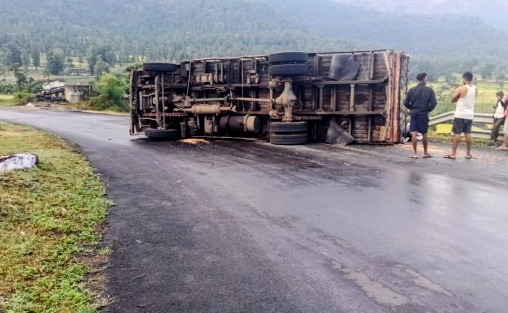 डांग: 28 अक्टूबर 2025: प्राप्त विवरण के अनुसार, कल सोमवार रात लगभग 12:30 बजे, मक्का से भरा एक ट्रक महाराष्ट्र के तराहाबाज से गुजरात के आहवा-चिंचली रोड पर जा रहा था। जहां यह ट्रक गुजरात-महाराष्ट्र सीमा पर चिंचली घाट से उतर रहा था। और उस दौरान, ट्रक के चालक ने स्टीयरिंग पर नियंत्रण खो दिया और ट्रक, जो भारी भरकम था। वो एक खतरनाक मोड़ पर पलट गया।