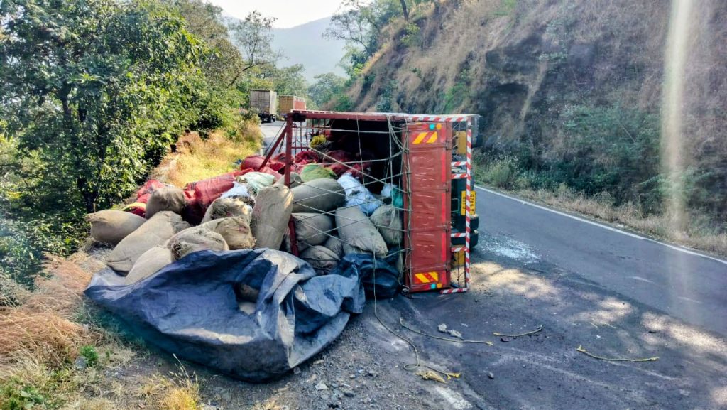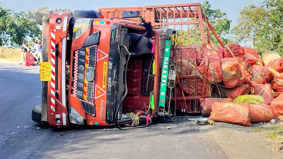 डांग जिले के सापुतारा घाट मार्ग पर बांस के उत्पादों से भरा एक आइसर टेम्पो पलट जाने से गंभीर हादसा हो गया।
