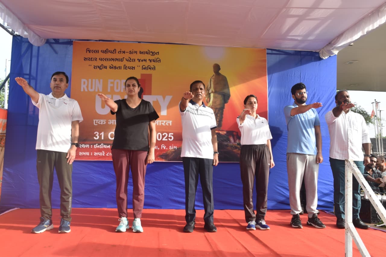 ડાંગ : તા: ૩૧: સરદાર વલ્લભભાઈ પટેલની ૧૫૦મી જન્મ જયંતિ નિમિત્તે સમગ્ર દેશમાં વિવિધ કાર્યક્રમોનું આયોજન કરવામાં આવ્યું છે. જે કાર્યક્રમના અનુસંધાને આજરોજ તારીખ ૩૧ ઓક્ટોબર ના રોજ રાષ્ટ્રીય એકતા દિવસની ઉજવણી નિમિત્તે ડાંગ જિલ્લામાં જિલ્લા વહીવટી તંત્ર દ્વારા ‘રન ફોર યુનિટી’ નું આયોજન કરવામાં આવ્યું હતું.